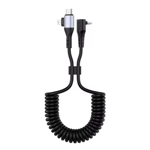 Deze USB-C kabel van Degion heeft een gekruld snoer, waardoor hij niet in de knoop kan raken. Bovendien zit de kabel niet snel in de weg, wat bijvoorbeeld handig is in de auto. Zo voorkomt u gevaarlijke situaties op de weg. Voor auto's met een USB-C aansluiting en smartphones met een Lightning of USB-C aansluiting.
