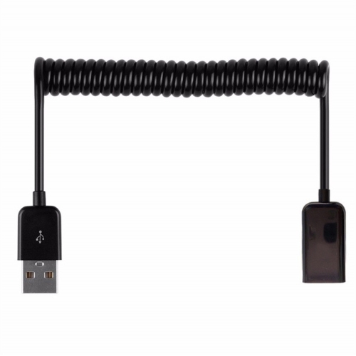 Gekrulde USB verlengkabel - 1 meter - zwart