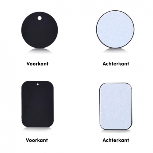Bevestig dit metalen plaatje op de achterkant van uw telefoon, wanneer u gebruik wilt maken van een magnetische telefoonhouder. U ontvangt een rond en een rechthoekig plaatje. De plaatjes hebben 3M lijm op de achterkant, waarmee het plaatje op uw telefoon of hoesje geplakt kan worden. Deze 3M lijm laat geen resten achter wanneer het plaatje weer wordt verwijderd.